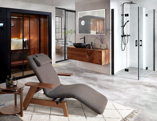 KLAFS legt seit jeher großen Wert darauf, einladende Komforträume für ganzheitliches Wohlbefinden zu schaffen. Design, Materialien, Komfort und smarte Technologien verbinden sich dabei zu einem stimmigen Ganzen. Gestaltung ist hier weit mehr als eine Funktion: Sie schafft Atmosphäre, weckt Emotionen und macht Wellness erlebbar. Deshalb arbeitet KLAFS seit vielen Jahren mit renommierten Designern zusammen. Die Wellnessliege SOMRA entstand in Kooperation mit Sebastian Herkner. Sein ästhetischer Entwurf verwandelt den Ruhebereich in eine stilvolle Oase, die Raum für Erholung bietet und die regenerative Wirkung des Saunagangs spürbar verlängert.